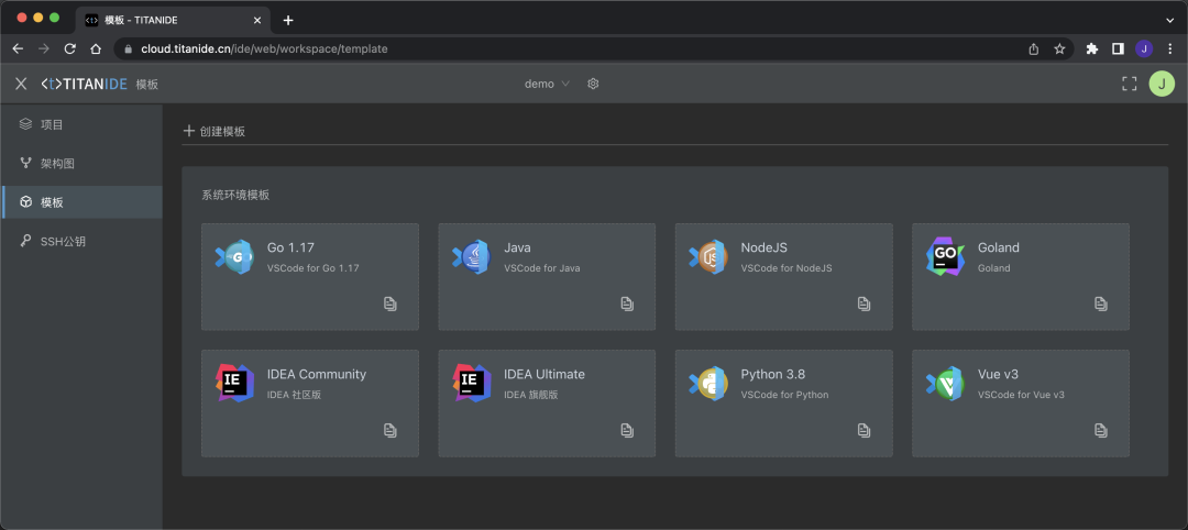 随心定制专属开发环境模板,支持一键复制。