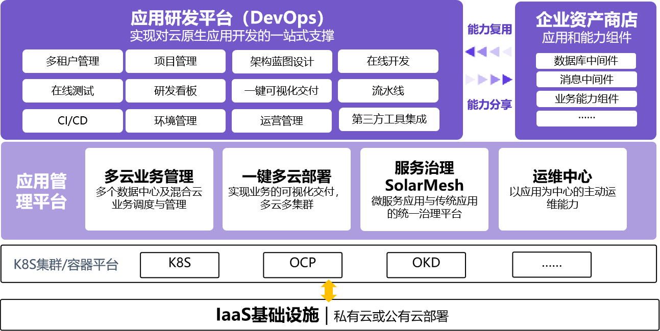 · 应用管理平台:实现应用的高效灵活交付、稳定可靠运行、简便智能运维。