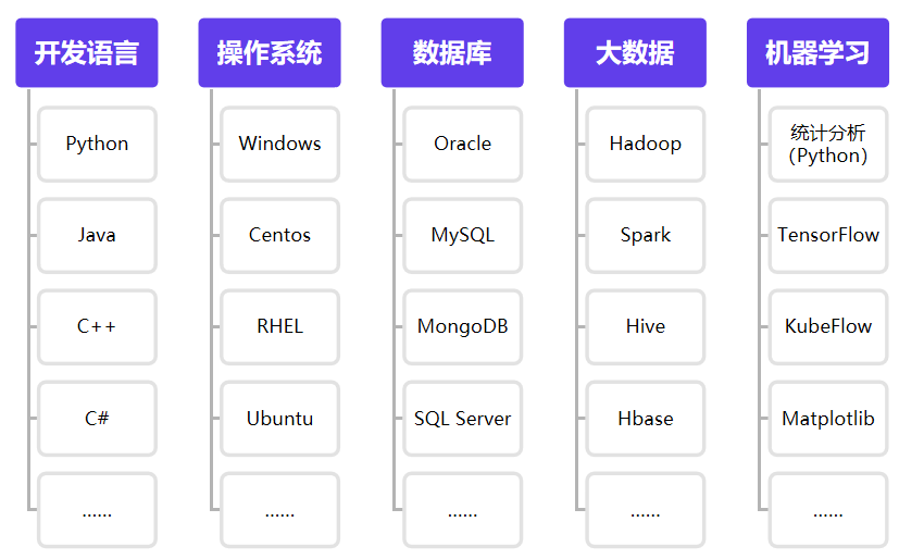目前各行业均在进行数字化转型,专业技术人才的需求量逐渐提升。 在“新基建”和产业互联网的背景下,各行业面临着企业上云和数字化转型的需求,IT人员需求量大,并且原有的IT从业人员需要新的培训内容和实践机遇。