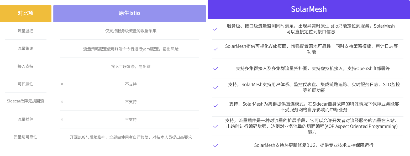 Istio与SolarMesh功能对比